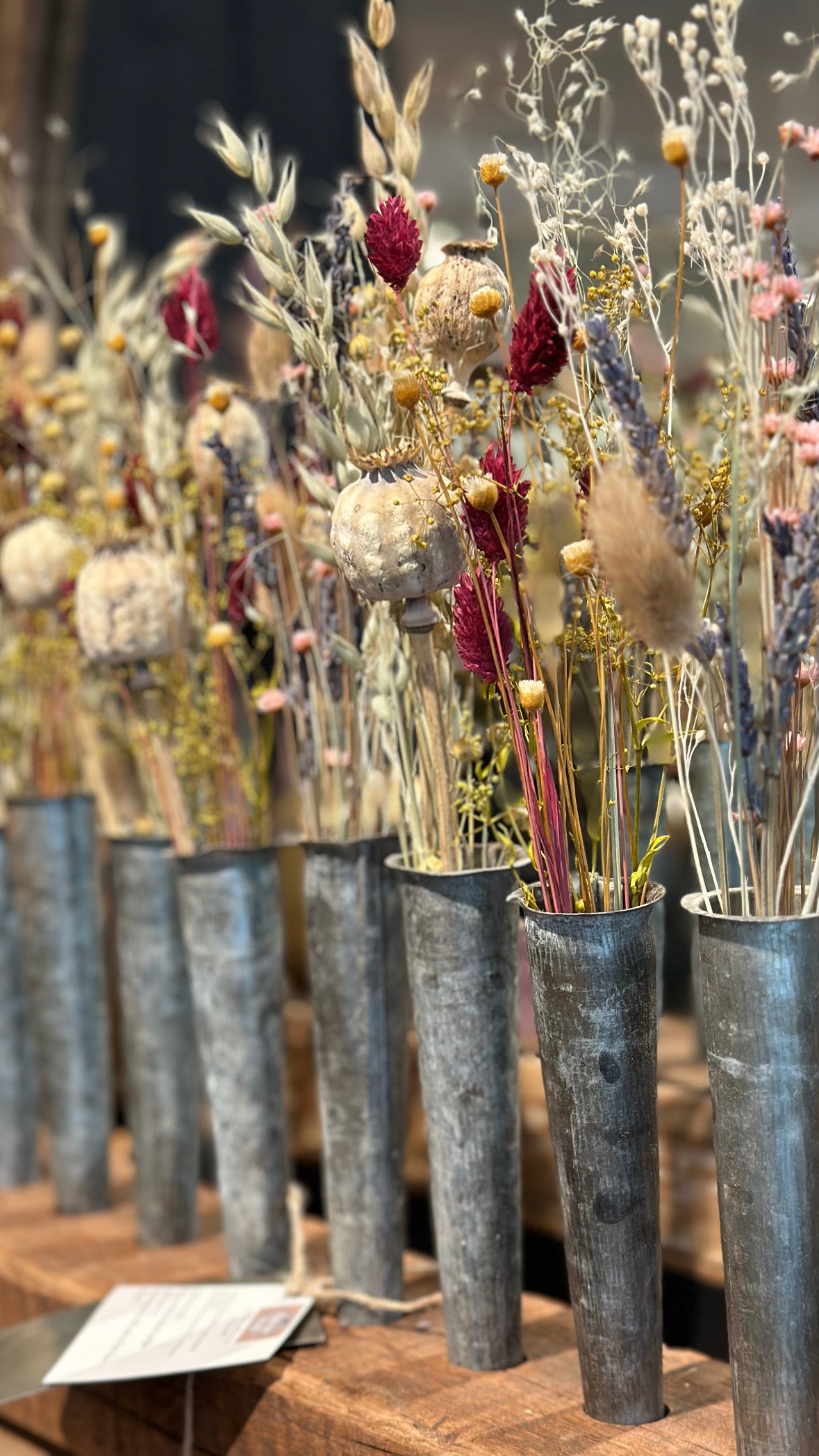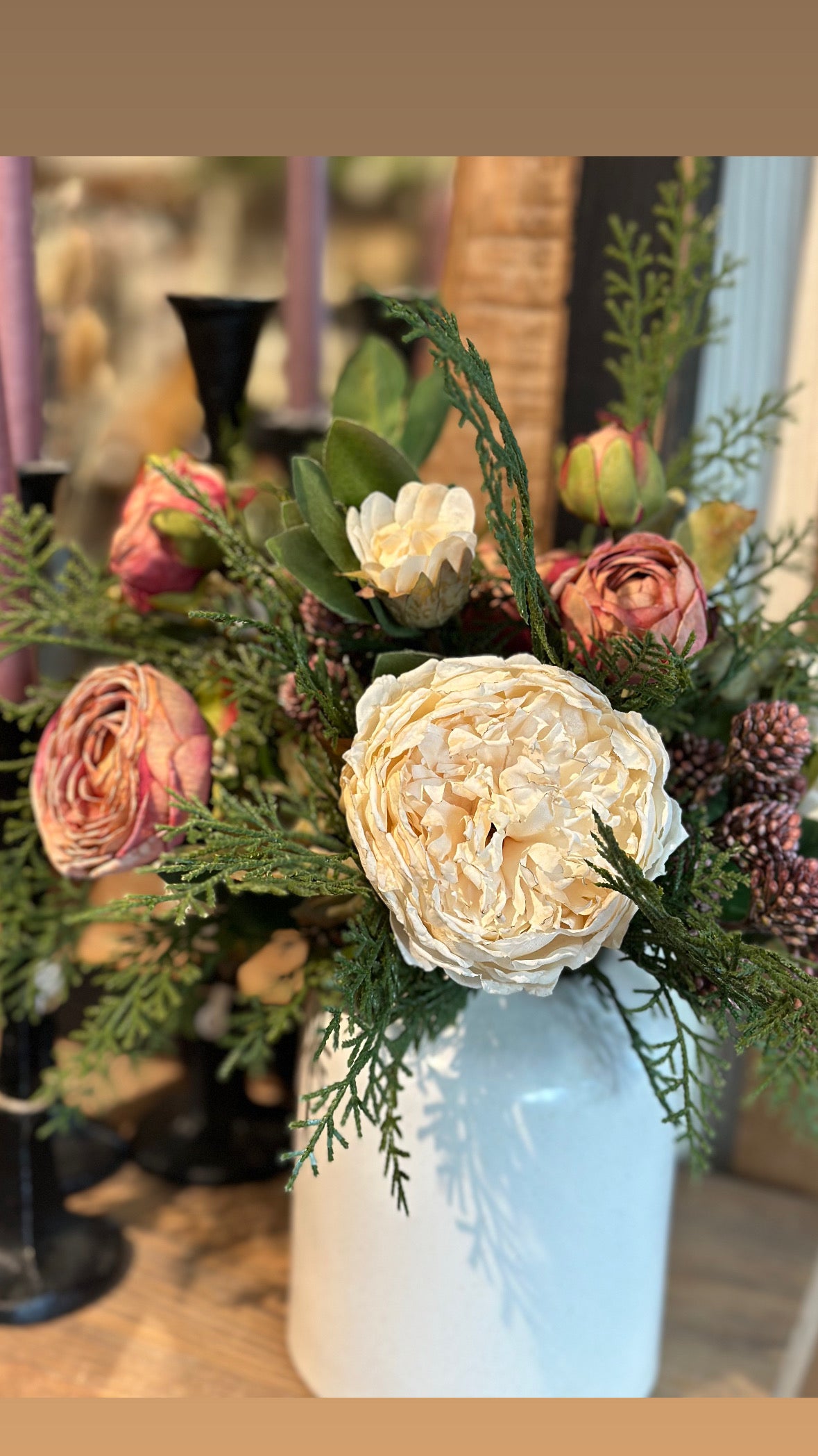 We are busy creating everlasting wreaths and arrangements. Winter greens, dried flowers, realistic faux, pinecones and seed pods. Our collection moves quickly, please visit us in store for best selection. Hoping to share some of these items online soon!