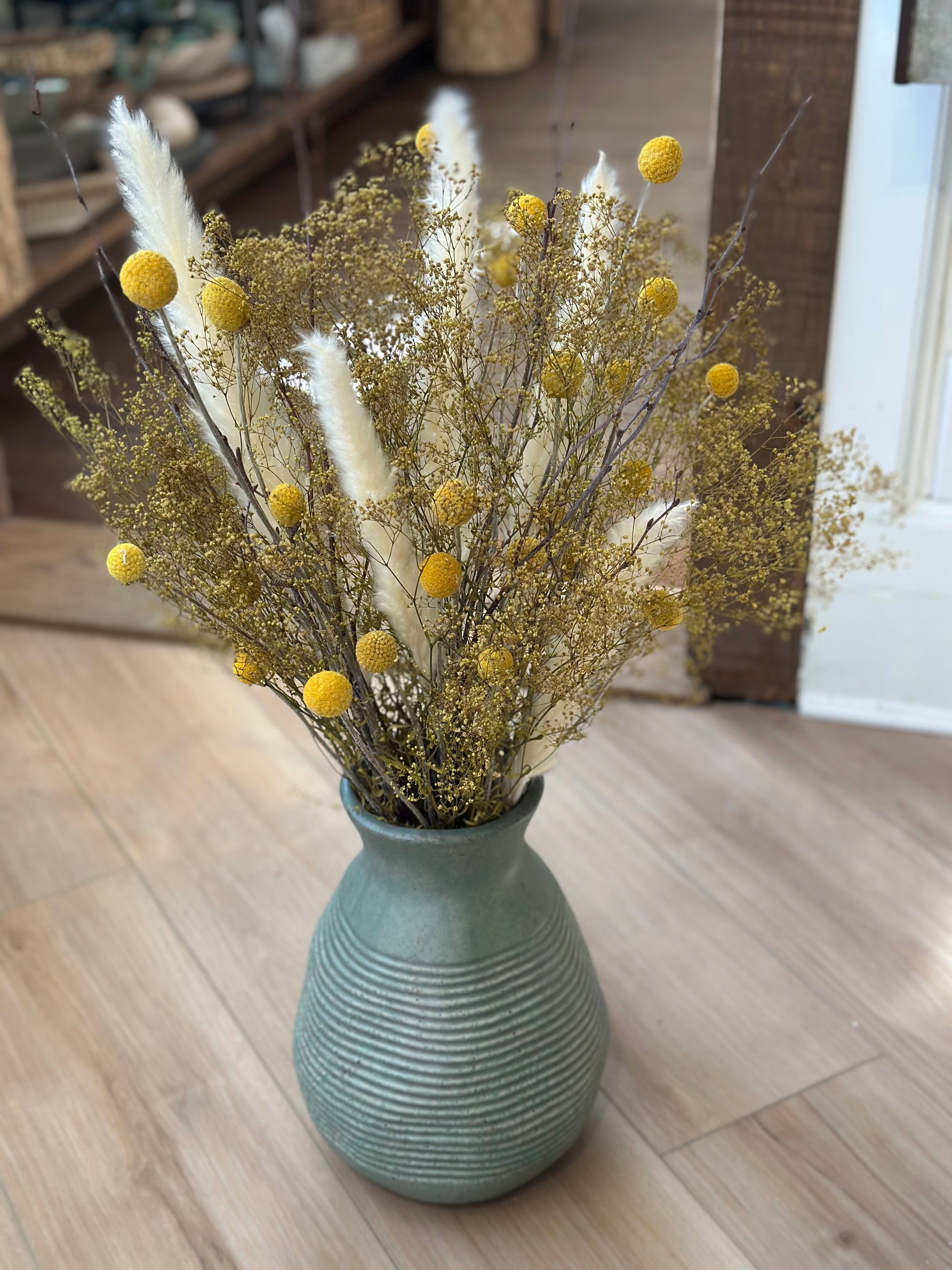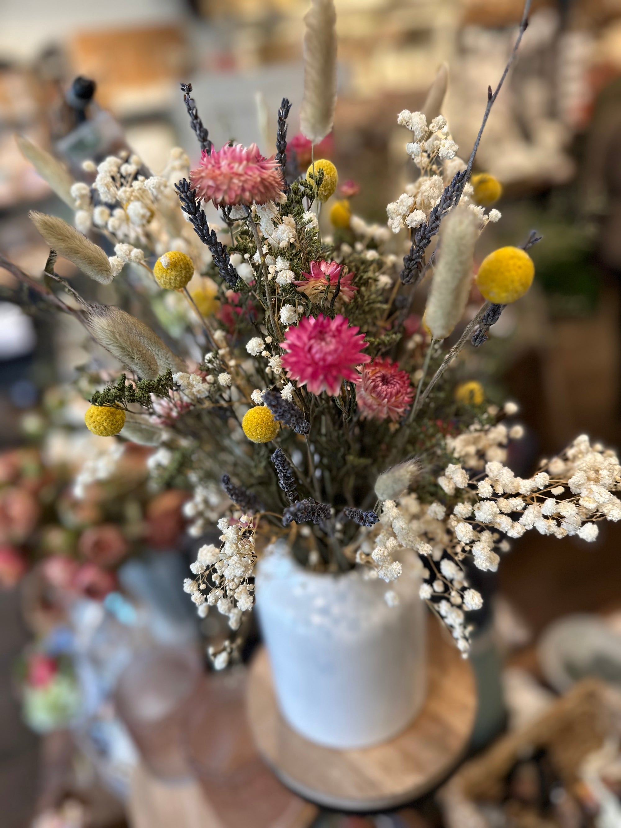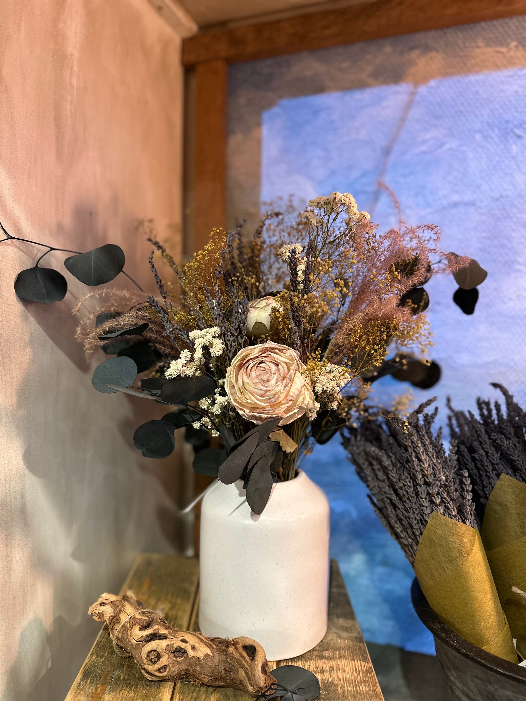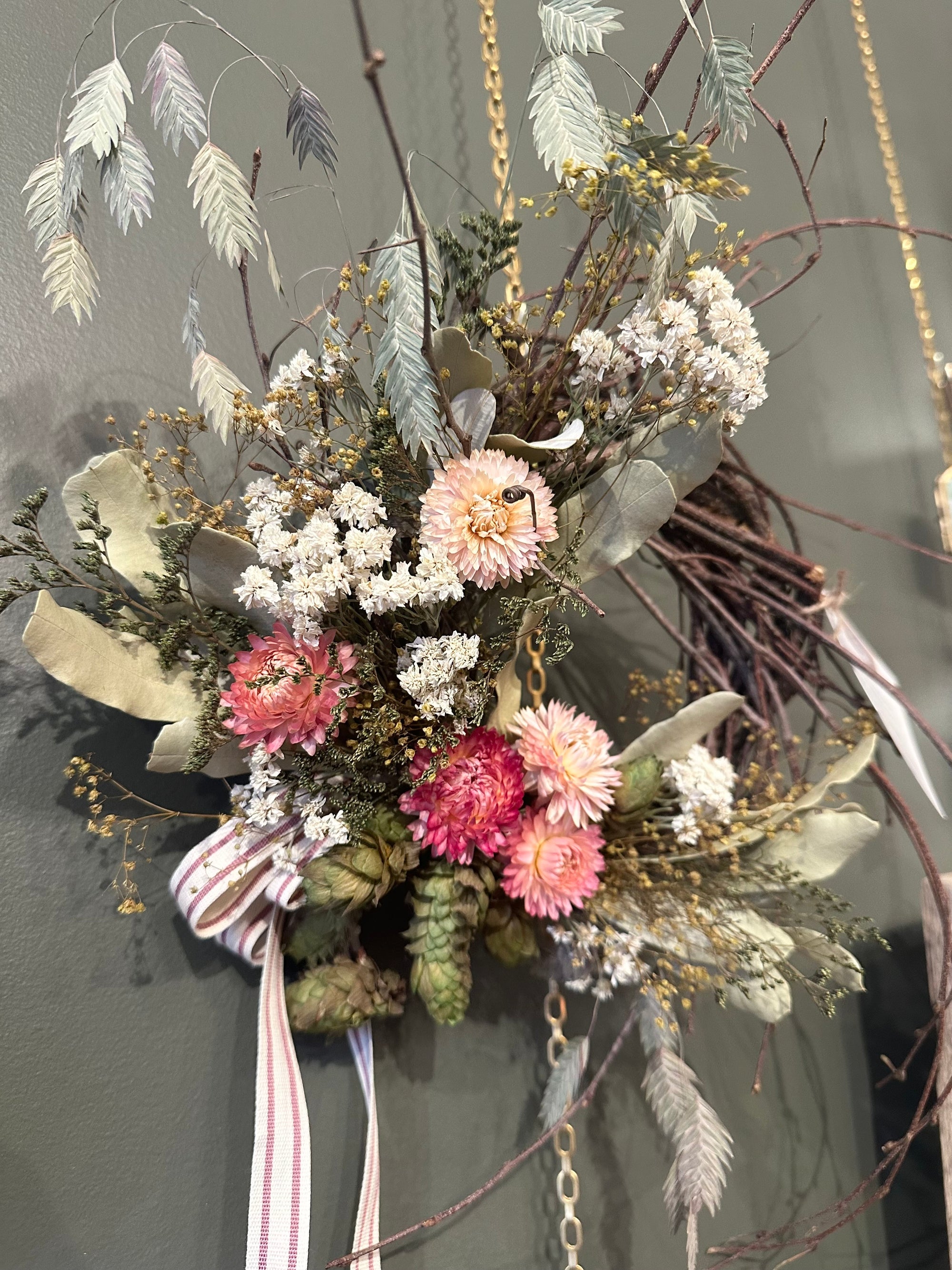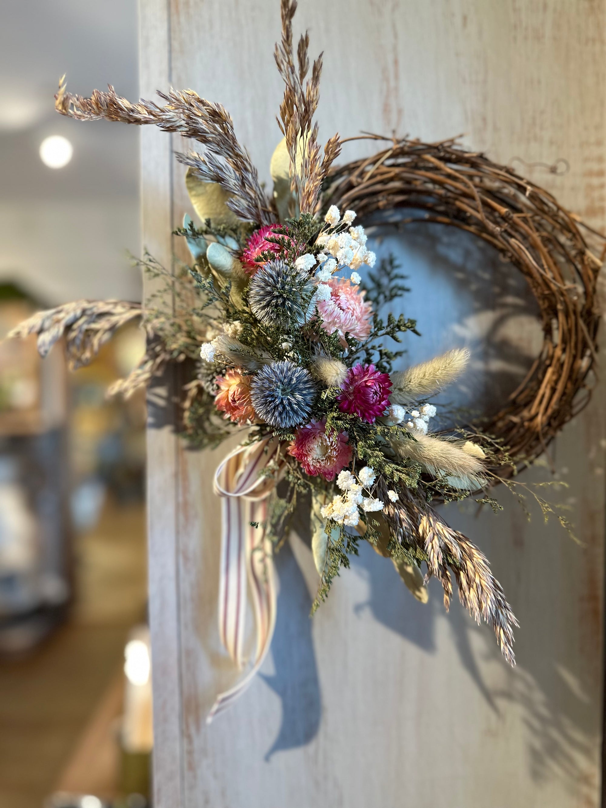 We are busy creating spring everlasting wreaths and arrangements. We work with dried flowers and realistic faux. Our collection moves quickly, please visit us in store for best selection. Hoping to share some of these items online soon!