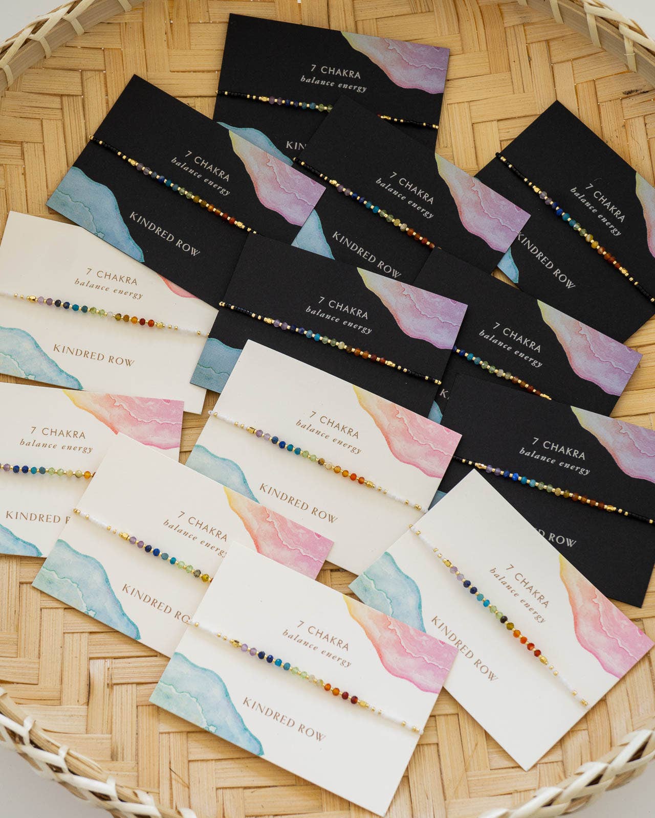 Chakra Rainbow Healing Gemstone Stacking Bracelet, Black