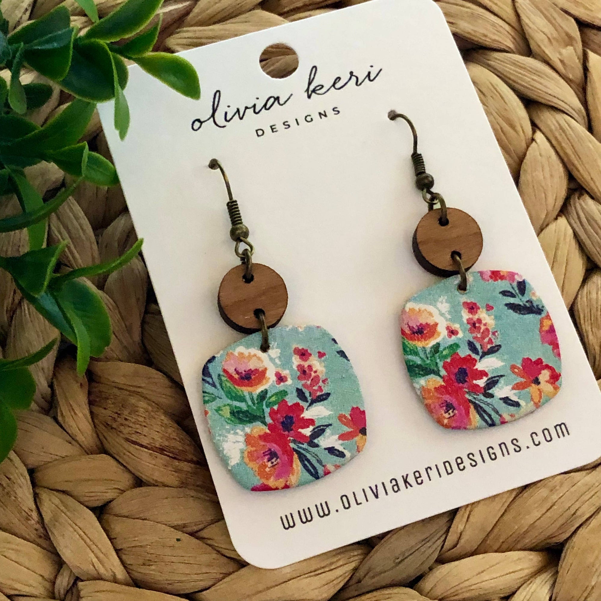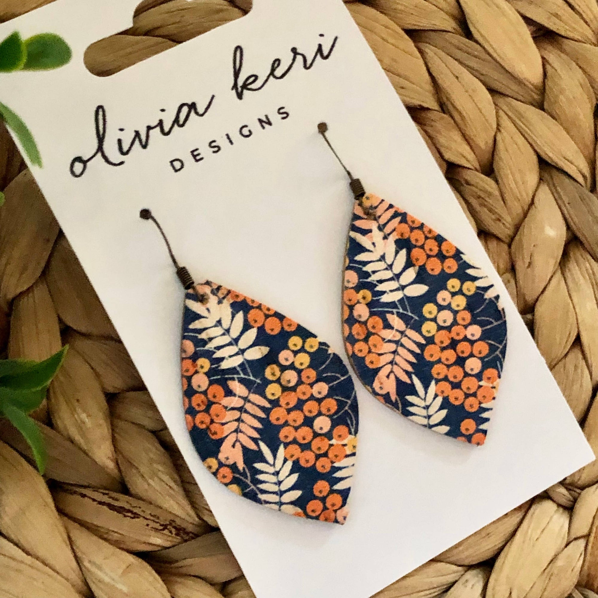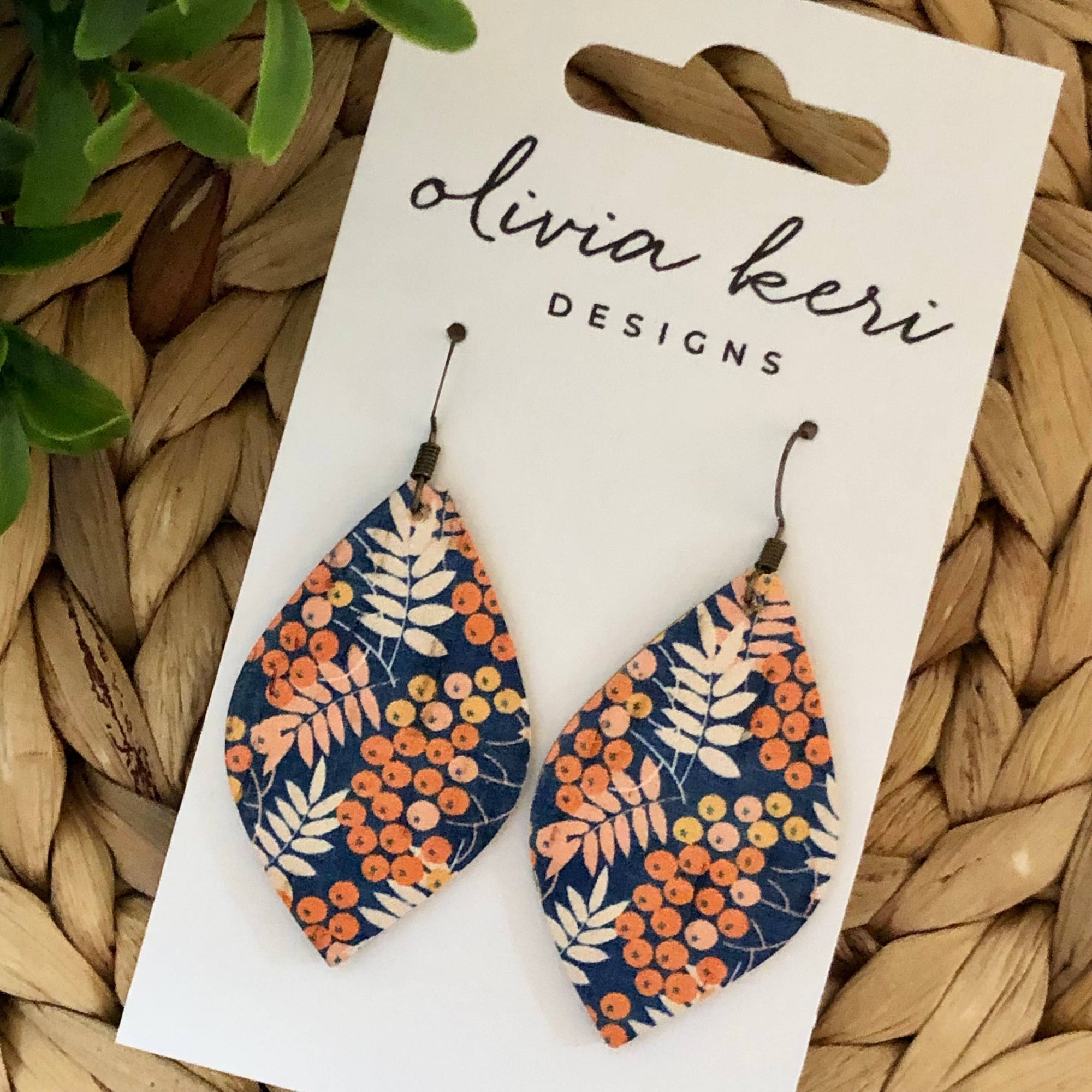 Nora - Bora Bora Floral Cork on Leather Dangle Earrings