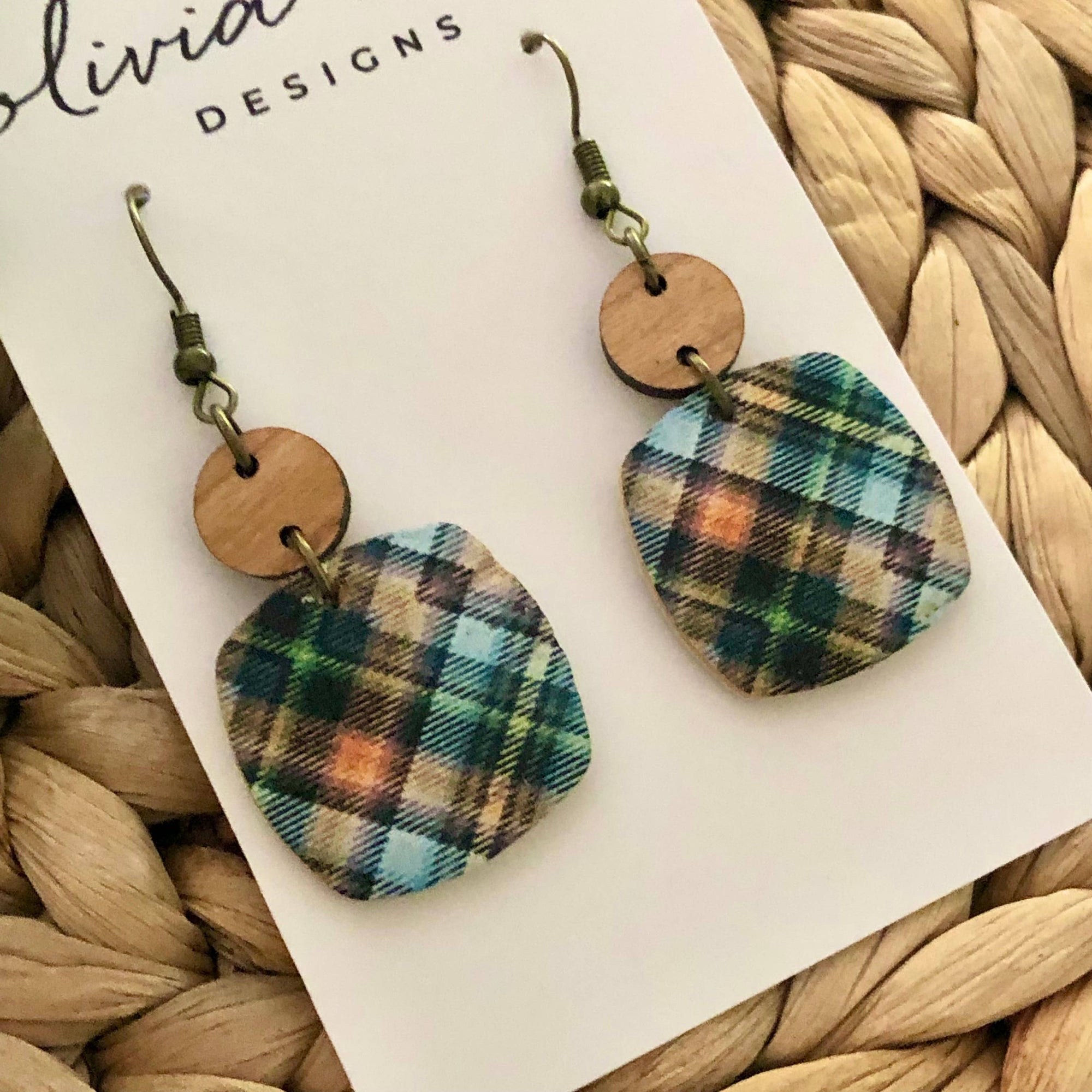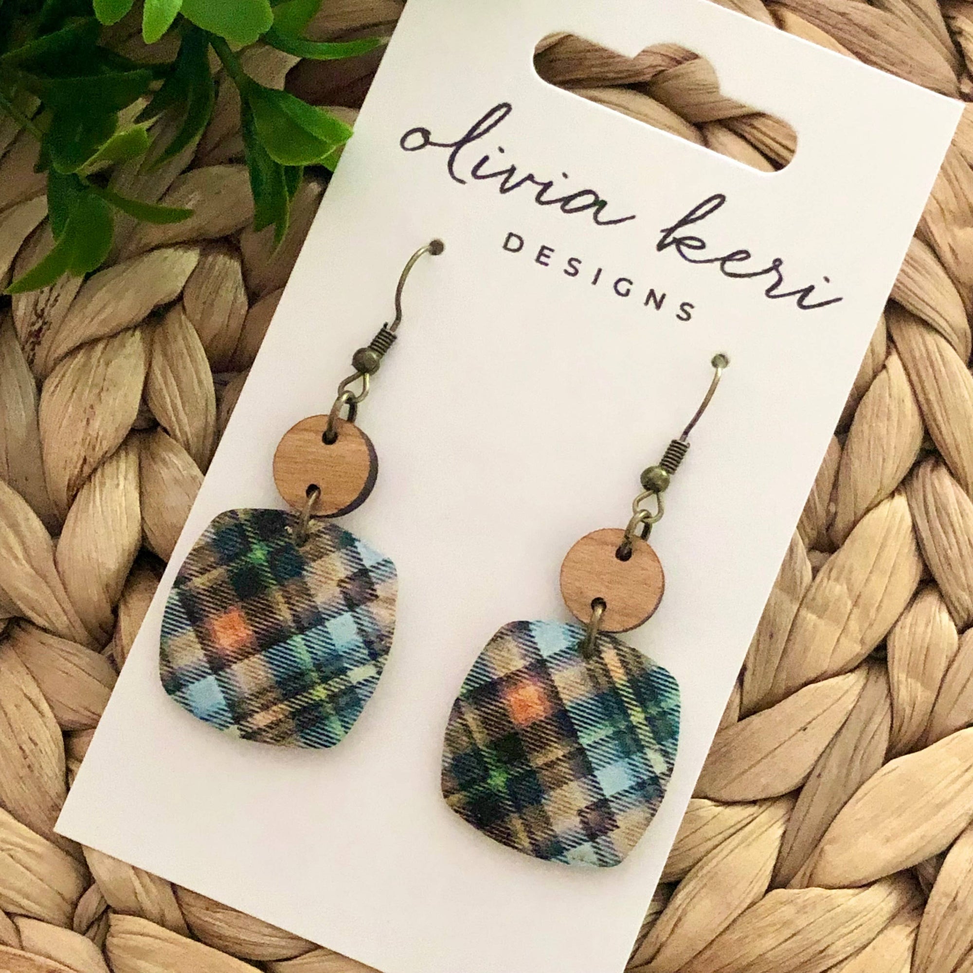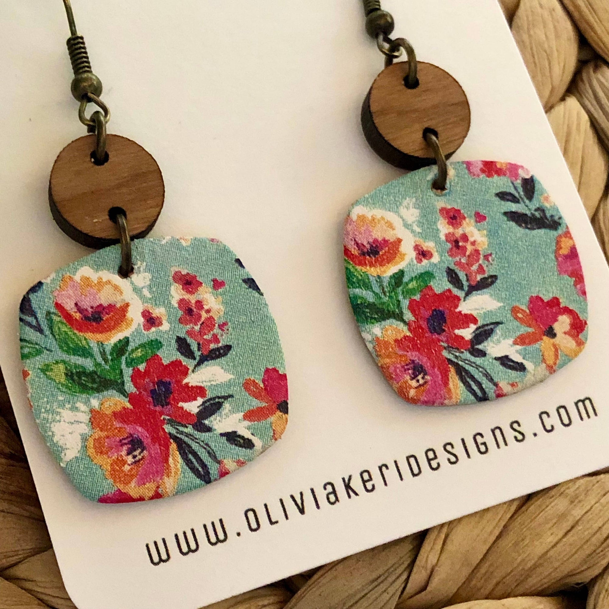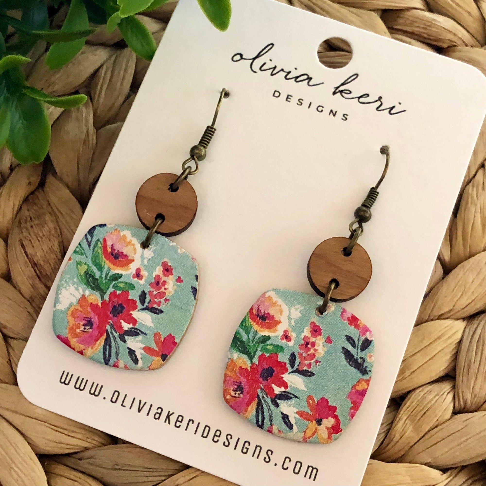 Nora - Bora Bora Floral Cork on Leather Dangle Earrings